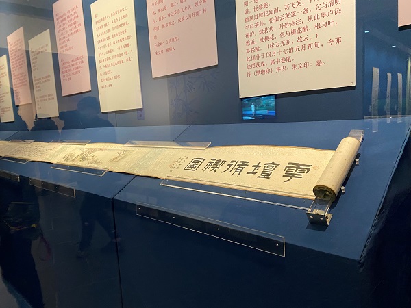 展览细分云薖园藏画馆、仁山遗泽、陶寿伯书画馆、钱松喦藏画室、黄养辉书画馆、徐风艺术馆等六个部分,展出文物包括吴观岱《重修贯华阁图轴》、张大千《三贤图》、清代李瑞清《松竹花卉图卷》等一批珍贵的书画作品。