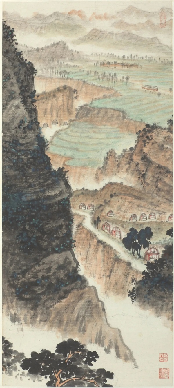 钱松喦(1899—1985),自号芑庐主人,江苏宜兴人。当代著名国画大师。早年就读于江苏省立第三师范学校,入名师吴观岱、胡汀鹭门下,打下了扎实的传统功底,对石溪、石涛的作品临摹尤其用心。1957年因画业有成,被聘为江苏省国画院画师。曾与傅抱石、亚明等名家进行二万三千里写生,创作了一批令人耳目一新的作品,如《红岩》《常熟田》《延安颂》等,不仅形成了自己独特的艺术风格,还为中国新山水画闯出一条新路,被誉为新金陵画派的重要代表。在出任江苏省国画院院长之后,其画艺更如火山爆发,天才纵逸,妙笔生花,创作了很多壮阔绚丽的绘画作品。
