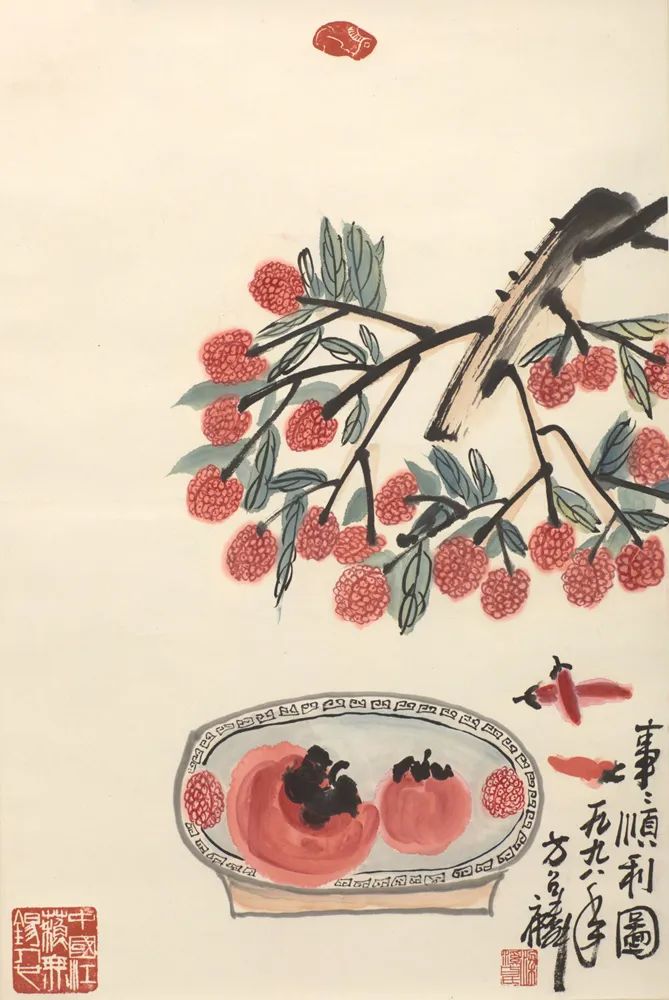 内容介绍:综合版画是指采用多样材质媒介、多种技法制作母版来印制完成作品的艺术形式。创作者可以用植物、纸类、石头、布料等不同材质;也可以用平、凹、凸、漏四种版画技法,也可以融入剪、刻、撕、贴、揉等综合手段来创作母版。以院藏画作《现代方召麟事事顺利图轴》为主体,将中国画中荔枝的肌理用版画表现出来,创造出新的美。