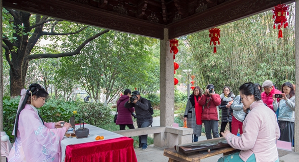 显应桥上,舞狮、石锁的民俗表演开场闹响元宵;内戏台里,“戏曲演唱”邀请戏曲名家名票,更有少儿京剧表演,传承和展现了传统戏曲文化;外戏台西水女子乐坊民乐悠扬;健身广场上的“民俗游戏”活动通过踢毽子、滚铁环、打陀螺等趣味游戏,让市民重温儿时乐趣,让小朋友们体验民俗,欢乐中寓教于乐;剪纸、泥人、古琴、黄氏喉科11个非遗项目的 “非遗展示”、糖画、皮虫糖、穆桂英糕团等“非遗味道”,更让市民亲身体验非遗的魅力;曲径通幽处,元宵民俗知识展、非遗知识普及展向市民普及元宵和非遗的小知识;在西水当代艺术中心,“在路上——无锡美协写生30周年特展”也助力元宵,增添艺术气息;还有来自五爱家园社区的志愿者们免费向市民烧煮、发放汤圆;同时举办的摄影比赛也吸引了众多参与者纷纷拿起相机……最后,在西水女子乐坊的丝竹之音中进行的猜灯谜抽奖更让百姓收获一份意外的惊喜。