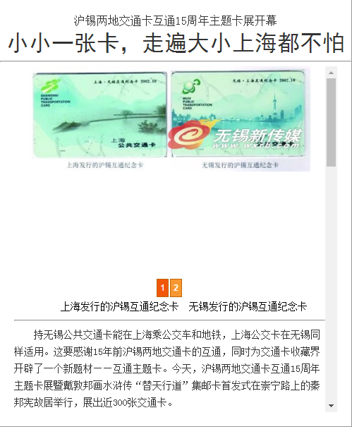 沪锡两地交通卡互通15周年主题卡展开幕