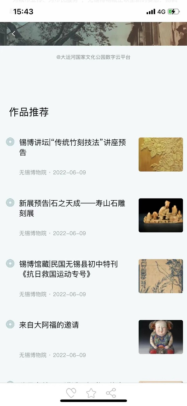 无锡是大运河的重要流经地,无锡博物院已在大运河国家文化公园数字云平台开设专栏,聚焦无锡地区关于大运河的文化内容和作品展示。