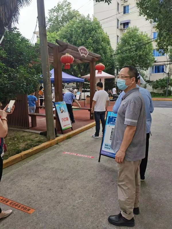 7月6日清晨5点30分,在无锡博物院副院长陶冶带领下,陶纯怡,马旭明,阴黎丽,王梁,陆艳,吴明峰,王熹共8名同志已在西园社区集合,随即配合社区开展核酸检测志愿服务。