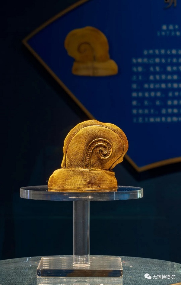 2022年7月26日在无锡博物院一号展厅展出国家一级文物——明金丝发罩,其工艺精细复杂,清雅秀丽,贵气十足,是明代金银首饰之佳作。