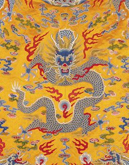 柘(zhè)黄,传统色彩名,也指染料,来源于柘木,是从6世纪的隋代以来,天子最早选用的龙袍暖黄色。《读通鉴论》中言:“开皇元年,隋主服黄,定黄为上服之尊,建为永制。”自此历代君主均沿用隋制,定黄色为御用色,臣民不得僭越使用。而用柘黄色做龙袍色的惯例一直维持到1644年满族人入主中原,建立清王朝,才被清帝用明黄色替代,以示区别。
