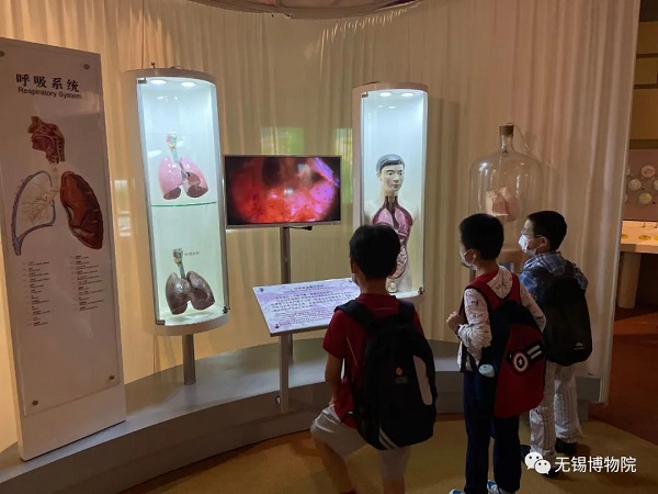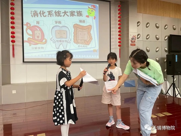 培训环节开始啦,我院科技馆二楼拥有与人体相关的展项资源,社教老师带领孩子们参观并详细讲解了人体相关展项,让孩子们对消化系统有了一定的了解。