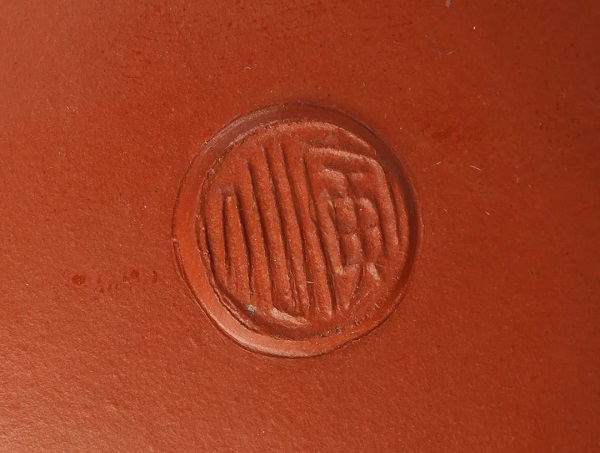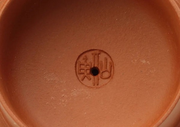 此壶造型优雅别致,朱泥色泽红艳,砂质细腻光洁。壶身腹部呈圆球形,象征地球;三弯流塑成和平鸽形象,内涵丰富;壶把为两手紧紧相牵形状;盖面浅刻九连心图案,心心相连,手手相握,壶脚三足鼎立,气势恢弘,极富时代气息。通观全壶,寓意地球上全人类心手相连、和平共建地球村。壶底及壶盖均钤阳文“寅仙”小章,把稍有“汪(一花押)”、“寅仙”两章,是汪寅仙大师于千禧年为迎接新世纪到来而特创。