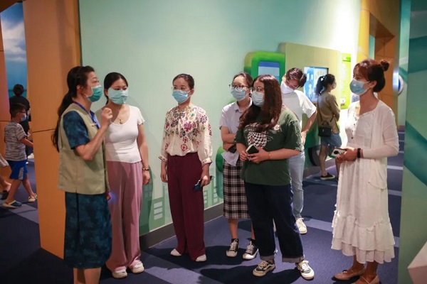 最后,志愿者们共同赏析了优秀锡博短视频,在尹莉老师和徐璞老师带领下参观了西一展厅的《吴风锡韵—无锡城市故事》展览和东区科技馆。观看了一场4D电影,对博物院有了更加深刻的了解。