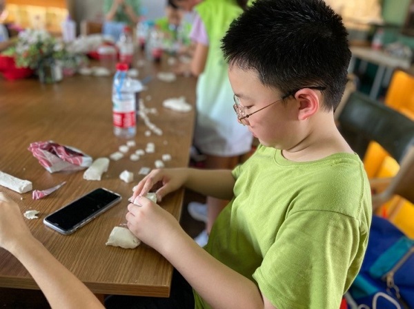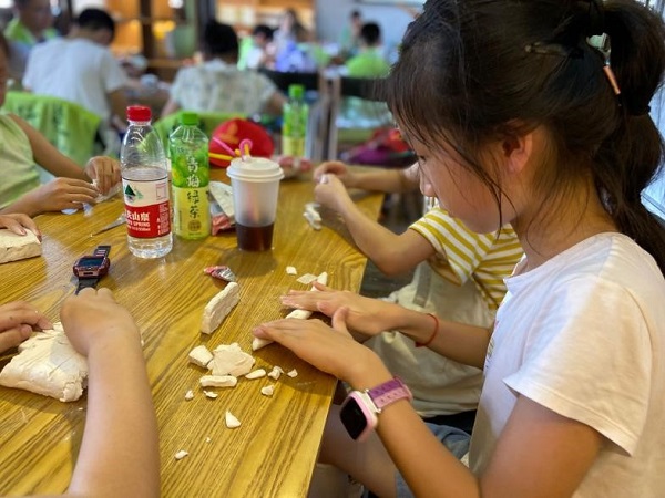 在运河畔的润生书局,学生们结合所学古桥知识,用石塑黏土代替砖石,模仿中国桥梁的独特结构来捏塑一座属于自己的桥。通过动手来实践行走过程中的所思所想,探究古桥坚固的奥秘,感受古桥文化之美。