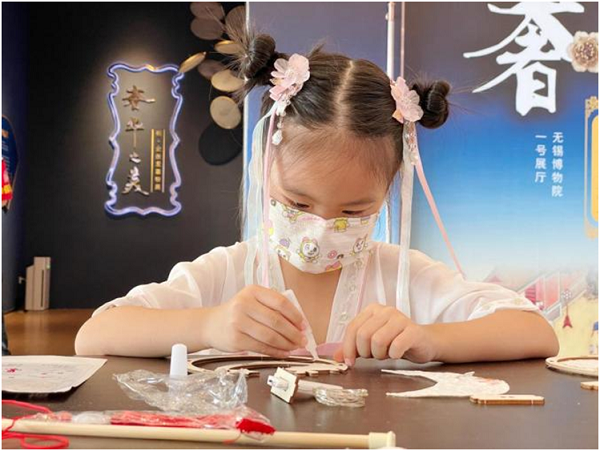 中秋节当天,无锡博物院联合寻真文化举办了“国风汉韵迎中秋”活动,为现场观众带了一场浪漫的“穿越之旅”。听一听丝竹管弦,品一品古今交融,身着汉服的“嫦娥小姐姐”带领观众们猜灯谜、投壶,共同制作一盏梦幻的中秋花灯。在体验传统民俗的同时,传递中秋这一古老节日中所蕴含的乡愁思念、文化传承与家国情怀。
