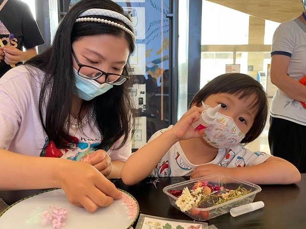 在社教老师的细致讲解下,孩子与家长默契配合,将通草纸剪出基本形状,再通过捏、捻、揉、压等几个步骤,赋予每个花瓣以灵动之姿。不一会,一朵朵玫瑰已经悄然绽放于大家的指尖,质地柔和色调优雅,可与真花媲美。每一朵“不谢之花”都蕴含着大家对团圆安康的期盼和对师恩如海的难忘,让我们一起来看看,一张纸在孩子们的巧手慧心中,是如何大放异彩的吧!