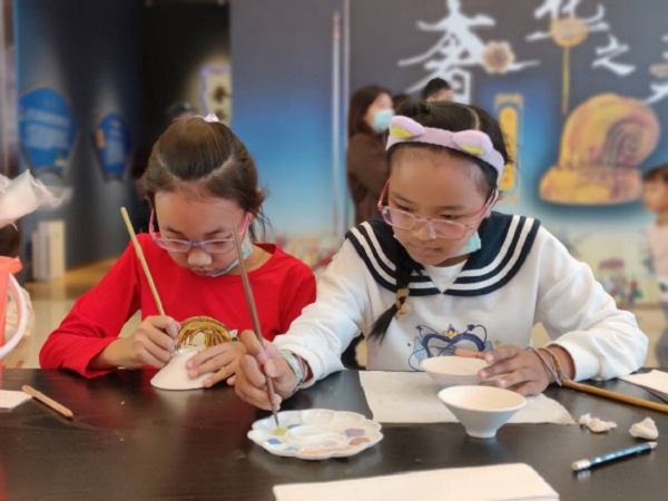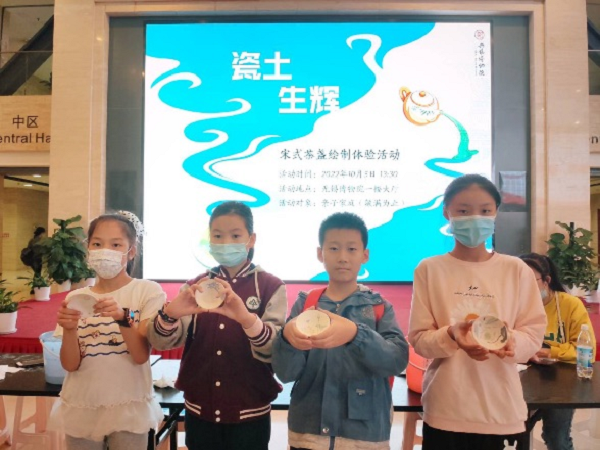 在10月5日的“瓷土生辉——宋式茶盏绘制体验活动”中,社教老师立足宋代名窑茶盏,解读各式茶盏上的纹饰密码,帮助大家了解茶盏的历史和审美价值。随后,孩子们拿起画笔,在茶盏素坯上绘制出天马星空的图案,在体会陶瓷艺术魅力的同时,更直观地感受宋代茶文化的魅力,度过了一个别样的国庆假期。