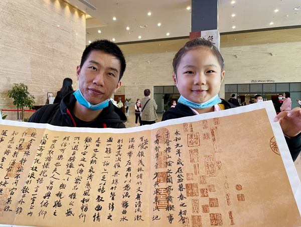 在10月7日上午举行的“翰墨抒怀——书法体验活动”中,无锡博物院的社教老师们首先为大家介绍汉字的演变,并展示了正确的毛笔握笔姿势——“五指执笔法”。在老师的指导下,现场的小书法家们十分投入,凝精聚神地临摹着王羲之的《兰亭集序》。“石如飞白木如籀,写竹还应八法通。若也有人能会此,须知书画本来同。”孩子们在一笔一画的临帖中,感受行书字体优美的线条和提按顿挫的笔法,在书法艺术中温润美好心灵,涵养美学意识。