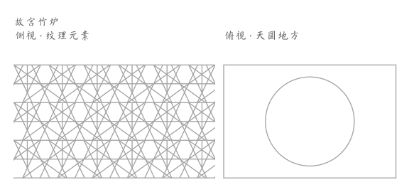 ▲竹炉生烟茶饮套装俯视图、侧视效果图和设计元素示意图