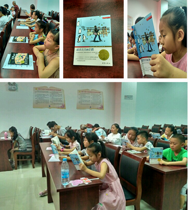 8月6日,“阅读使者全城行”走进蠡湖街道中南社区,特邀志愿者、约读书房杨俊肖老师为近30名青少年带来阅读指导讲座“《波普先生的企鹅》导读”。
