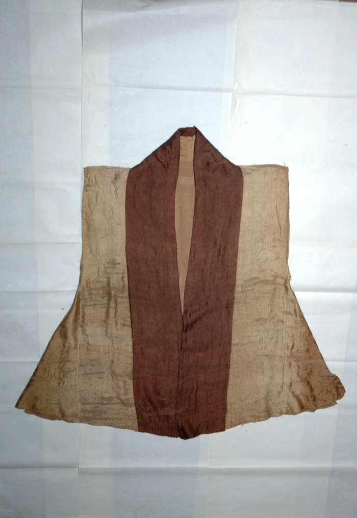 元浅棕色菱纹暗花罗直襟马夹(一级文物)