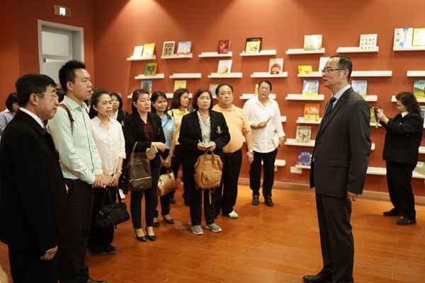 7月4日下午,曼谷市教育局副主任Mr.THANIT KITTIPHATHANOTAI率曼谷市属的40多所小学副校长代表团一行52人来到无锡市宫进行考察交流活动。市教育局副局长吴洵如,国际交流处处长林蜀涓、无锡市少年宫主任程宏强陪同参观。