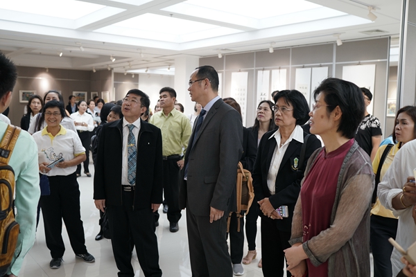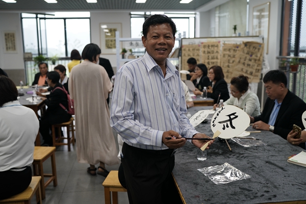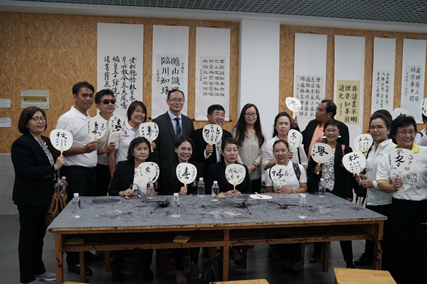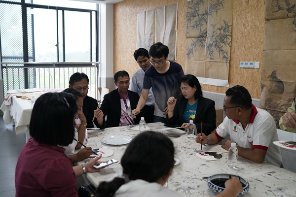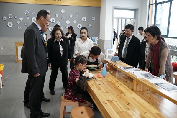 泰国曼谷教育代表团一行走进陶艺馆、绘本馆、国学馆观看孩子们的课程学习,在绘画展厅欣赏孩子们的精美作品。市少年宫一流的硬件设施、丰富的课程设置、丰硕的教育成果给来访嘉宾们留下了深刻印象。他们还饶有兴趣地拿起了毛笔,跟随老师现场学习了书法和国画,领略中国传统文化的魅力。