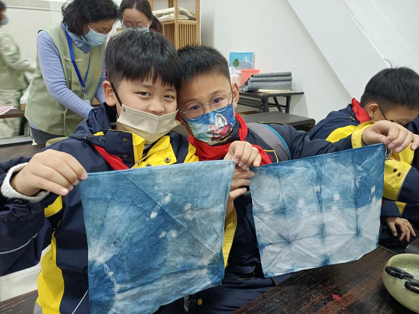 “雏鹰小队”研学实践活动是寒假档的热推项目,活动涵盖拓印、陶艺、扎染、彩绘泥人等颇受欢迎的内容。2023年寒假,无锡博物院共计开展9次238人次的“雏鹰小队”活动,结合无锡博物院常设展览,针对不同年龄段的学生们开展了各具特色的主题活动。“活字墨谱”结合了无锡深厚悠久的铜活字印刷历史,同学们通过亲手拓印诗句来体味家乡的历史文化;“瓷土生辉”立足我院的瓷器藏品,帮助学生了解陶瓷的历史和审美价值,并通过釉下彩绘体验帮助大家加深对陶瓷艺术的理解;“植物扎染”以无锡钱裕墓中出土丝织品为中心,向学生们介绍传统丝织技术及染色技术,学生们以智慧提炼文物元素,用天然植物染料进行创意扎染;“塑说无锡”通过对无锡非遗艺术——惠山泥人的历史学习和彩绘体验,让更多的青少年学生了解惠山泥人的创作过程和艺术特色,为古老的民间艺术注入新活力;“紫玉金砂”依托无锡传统紫砂陶艺的悠久历史,带领学生们识陶制陶,通过翻模制作一只憨态可掬的紫砂小虎茶宠,在体验中感受传统文化的魅力。