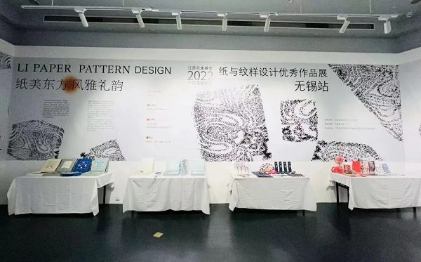 “纸美东方 风雅礼韵——纸与纹样设计优秀作品展”是2022年度江苏艺术基金资助项目之一。该展览由江大设计学院策划发起,苏州纸加文化传播有限公司承办,双方通过凝聚艺术家、设计师及造纸匠人、非遗传承人的智慧,在中国传统纹样和生态古法造纸基础上,对“礼纸”这一命题作出符合时代特征的新解读,力求打造与现实文化相融的文创产品,为传统纸业与艺术家寻求产业对接平台。同时,响应科技材料创新、低碳环保去塑化、学科融合等大趋势,使人们看到中国传统文化及现代元素相遇的更多可能性。本次展览共选取黄健华、王一菲《苗韵•锦绣》等院校学生原创设计作品93幅展出,并随机挑选作品制作衍生品,应用于生活、工作、装置装饰等领域,赋予“纸艺”新生命。