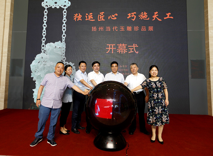 7月10日上午,由无锡博物院、扬州工艺美术集团联合主办的“独运匠心 巧施天工——扬州当代玉雕珍品展”开幕式在无锡博物院举行。无锡市委常委、宣传部长袁飞,扬州市委常委、宣传部长姜龙等领导出席了开幕式。