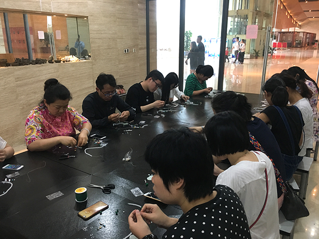 为弘扬中华传统玉文化,深入了解展览内涵,5月19日“艺术课堂”推出“琼台月华&珠璃璎珞”手作饰品体验活动,共有15名学员参与。