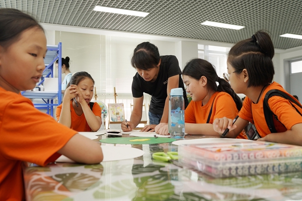 随后营员们分别走进美术、声乐、科技活动室,与无锡的小朋友一起交流学习。