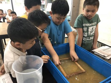 绘画课堂中,孩子们学习了基础的绘画理论,同时体验了刮画、贴画、数字油画等创作方式,以便更好地进行艺术表达。陶艺课堂上,孩子们学习了陶艺风格及工艺的演变过程,将陶泥做成陶片,再拼接出各式各样的作品。造纸课程展示的是工业时代前的造纸方法,孩子们体验了抄纸这一工序,并用所造的纸制作了干花书签,领悟到古老匠心中所含的智慧。