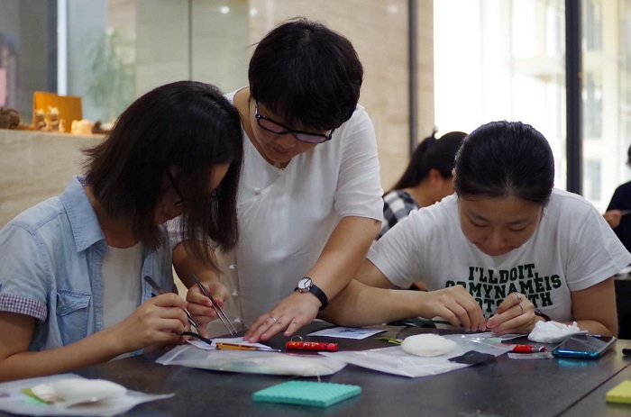 学员们通过盘艺的学习制作,体验如何将古老的盘扣制作技艺融入到了现代生活中,结合了古典与现代的气质,创造了现代女性新风尚。