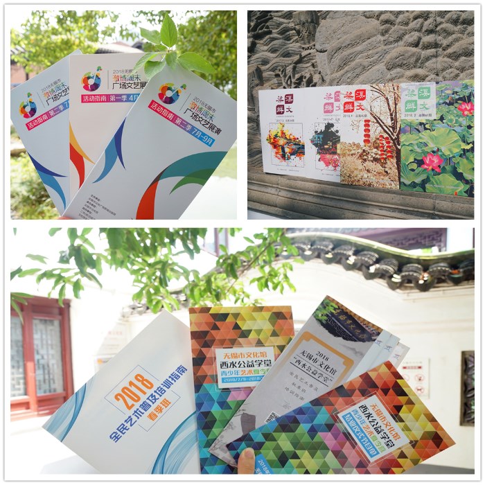 在活动现场,工作人员重点推荐了市文化馆的西水公益文化品牌:“西水公益课堂”——全民艺术普及公益培训、“西水公益讲堂”——群文公益大讲堂、“西水公益剧场”——高雅艺术免费看、“西水当代艺术中心”、“西水女子乐坊” 、“激情周末”广场文艺展演等活动,并引导市民朋友关注市文化馆微信公众号和文化云平台,通过网络更方便快捷的了解市文化馆的公益文化服务信息。同时,在现场还发放了馆刊“梁溪群文”、“激情周末”广场文艺展演活动指南、“西水公益学堂”培训指南、非遗文化纪念品等宣传资料,帮助市民朋友更直观的了解相关活动内容。