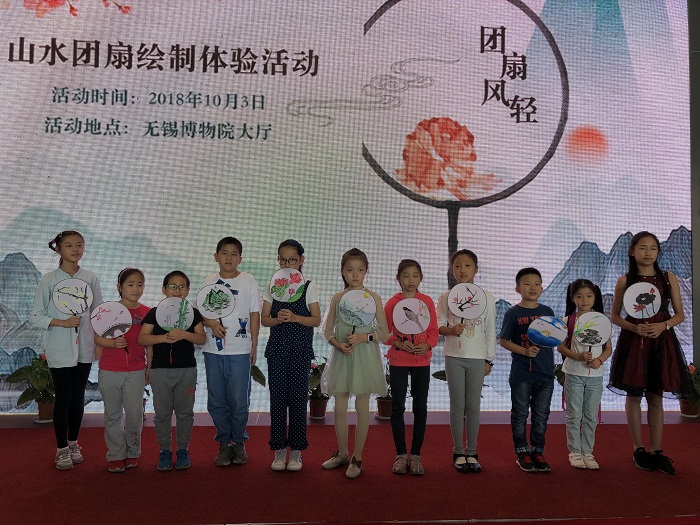 10月3日下午,无锡博物院结合《梁溪折桂——无锡博物院开放十周年特展》开展了“团扇风轻”——山水团扇绘制体验活动,30组家庭参与其中。