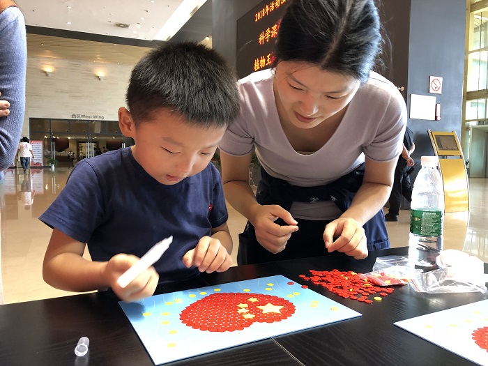 在举国同庆的日子里,无锡博物院组织开展“我为祖国来庆生”——纽扣画体验活动,50对亲子家庭积极参与,以做手工的独特方式接受爱国主义教育。