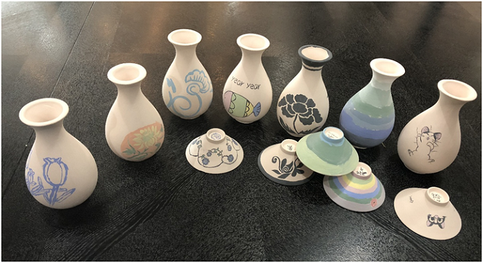 瓷器是中国的名片,我们对瓷器的亲切感是与生俱来的。在之后的体验环节中,观众们将自己对陶瓷艺术的想象画到了玉壶春瓶素坯上。最后,风格迥异的成品体现出观众们对陶瓷艺术的不同想象。