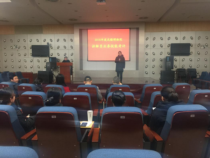 12月10日,无锡博物院对开放服务部的讲解员进行了2018年度业务技能考评,此项考评旨在为不断加强讲解队伍建设,提高讲解队伍的综合素质。无锡博物院党总支书记肖炜和分管副院长蔡卫东参与了考评。