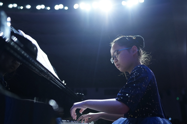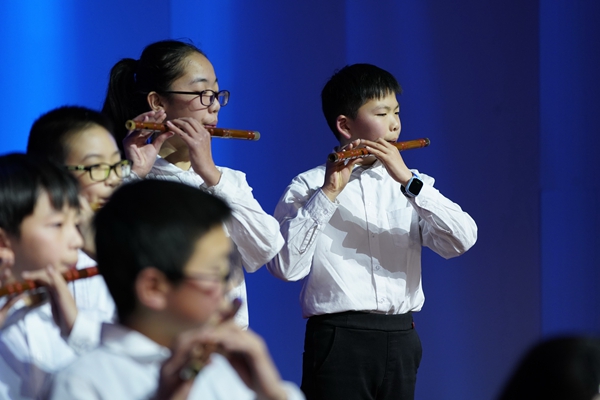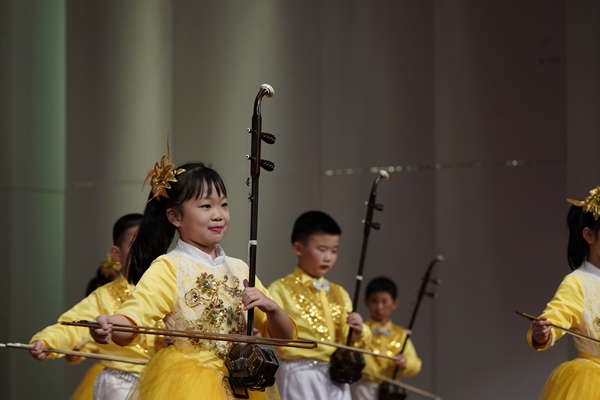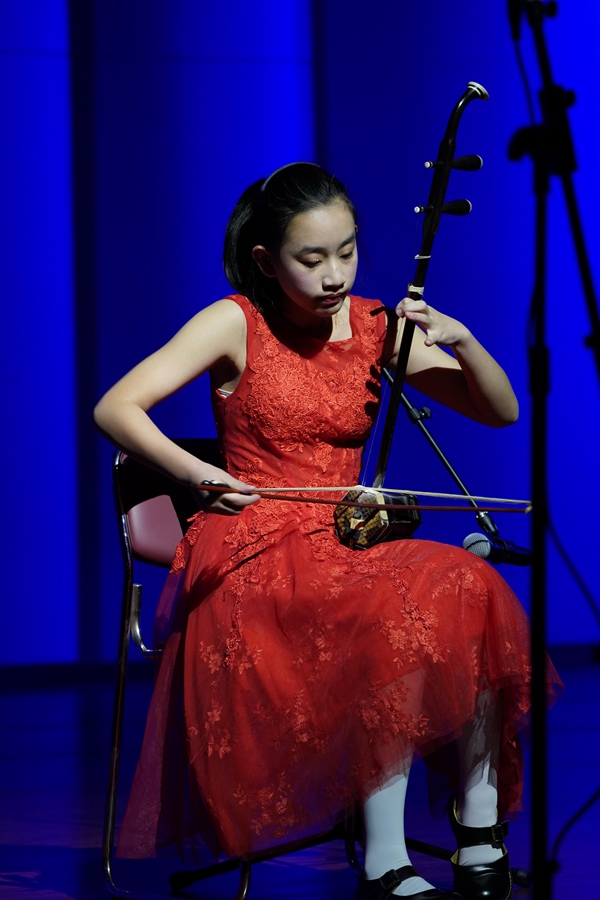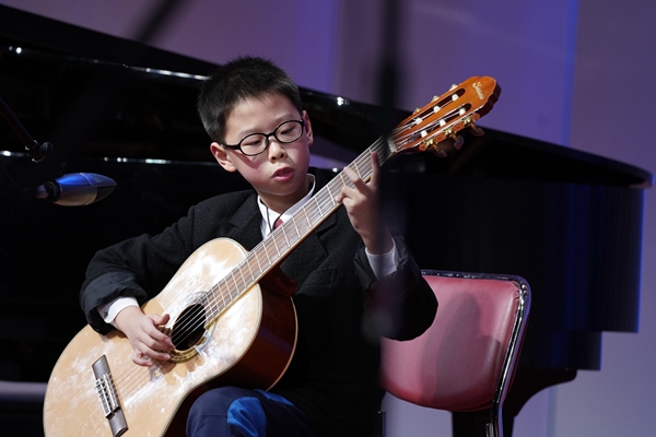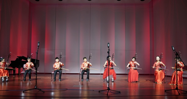 演出在大提琴学员们的《贝多芬三重奏》中拉开帷幕。整场演出节目形式多样,内容丰富多彩,不仅有钢琴独奏、联弹、小提琴独奏,也有萨克斯独奏《野蜂飞舞》、吉他独奏《绿袖子》、尤克里里弹唱《外婆的澎湖湾》等脍炙人口的曲目,跳动的音符、昂扬的旋律,令在场的观众沉醉其中。二胡齐奏《光明行》振奋熟悉的旋律把整场演出再一次推向高潮,笛子独奏、重奏呈现出独具一格的中国风,受到了现场朋友们的喜爱,爆发出阵阵掌声。最后一曲古筝独奏《银河碧波》婉转悠扬,浪漫抒情,听众无不沉浸其中。