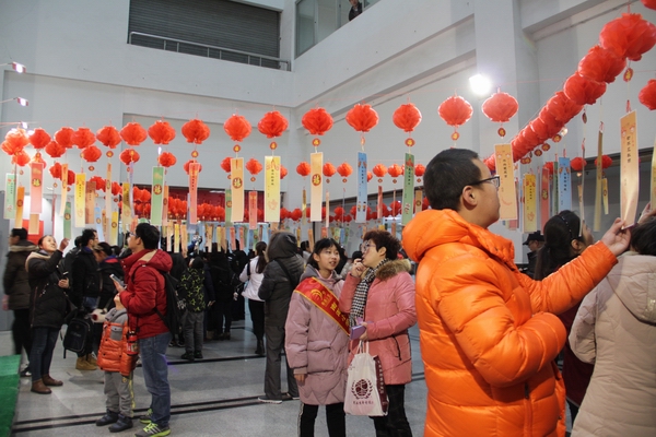 为弘扬中国传统文化,营造欢乐祥和的佳节氛围,丰富广大读者的文化生活,2月16日上午,2019喜乐元宵灯谜会如期在无锡市图书馆一楼东展厅前举行。200条喜庆灯谜高高挂起,读者们呼朋唤友、扶老携幼,纷至沓来,猜灯谜、闹元宵,喜庆的节日气氛伴随着浓浓年味、书香味在全馆弥漫。活动吸引近500名读者参与。