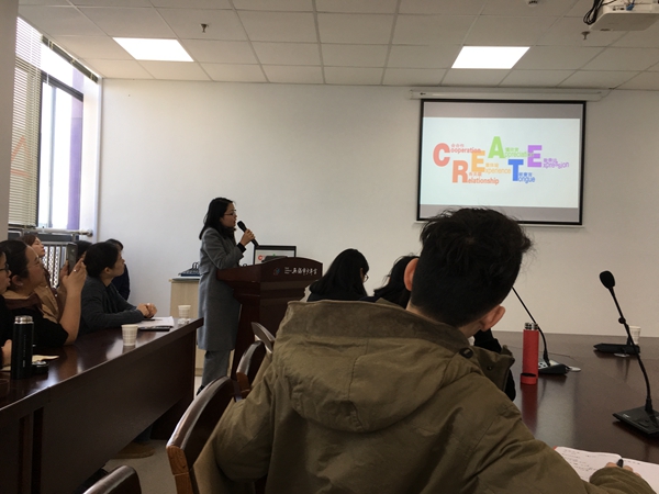 考察团一行在参观完音乐厅、艺术展厅等各场馆后进行座谈交流,进一步就运维管理、兴趣培训和活动开展等方面进行了深入的互动交流。少年宫尤敏红等4位老师分别汇报了各自在探索课程建设“传承与创新”上的经验成果。
