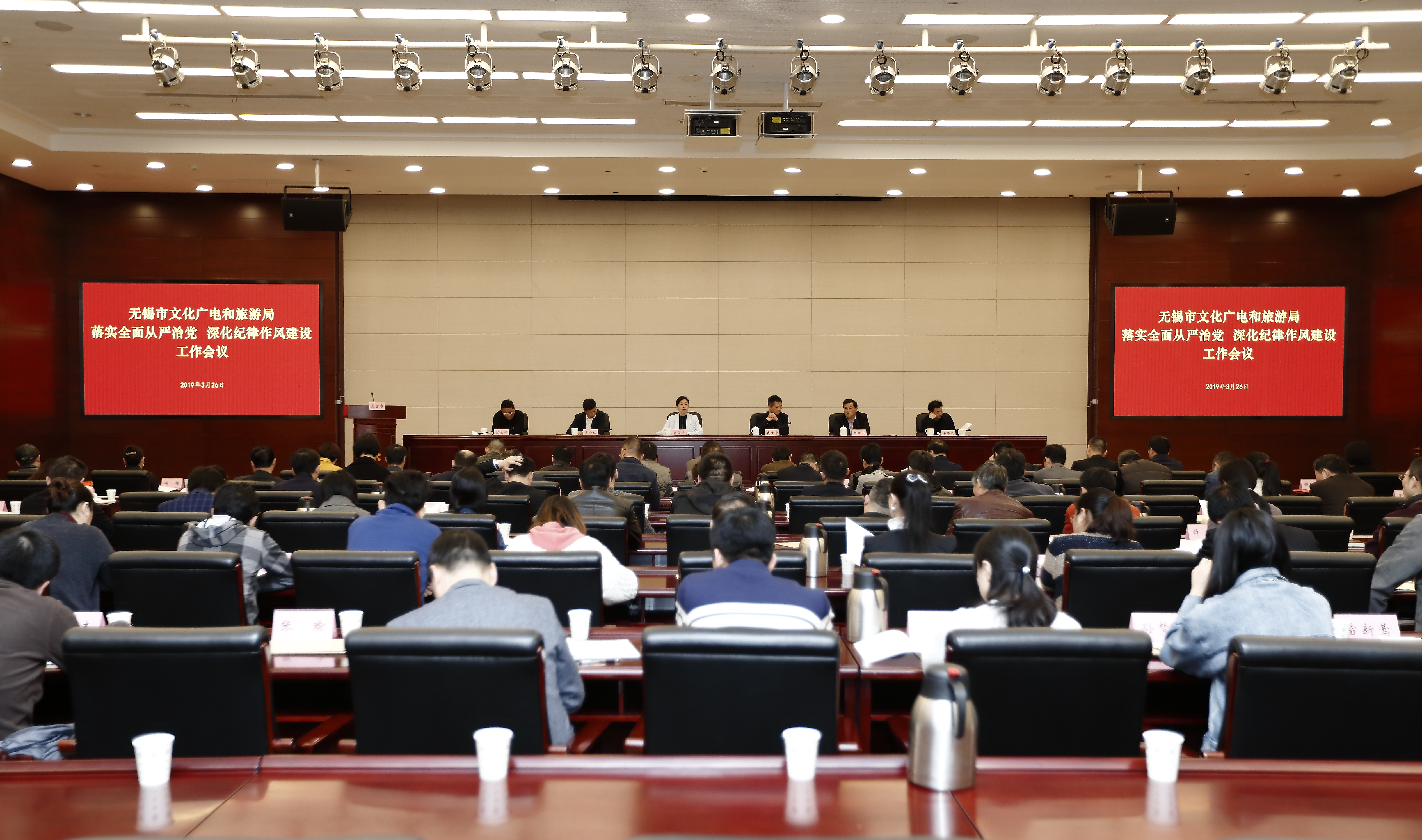 3月26日,市文化广电和旅游局召开2019年度党风廉政建设工作会议,学习贯彻中央、省市纪委全会精神,总结2018年全市文广旅游系统党风廉政建设情况,部署2019年全局党风廉政建设工作。局领导班子成员、局机关全体干部、文化市场综合执法支队和旅游监察支队全体人员、局属各基层党组织负责人参加了会议。市纪委派驻第十三纪检监察组组长钱文豪出席会议并讲话。