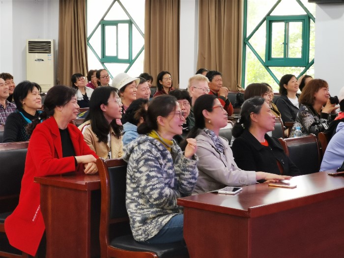 两个小时的讲座虽短,但在音乐的催化下,大家的距离越来越近。学员们时而欢笑, 时而吟唱,更多的时候则是屏息倾听, 气氛热烈而愉快。讲座结束后,学员们仍意尤未尽,围住钱琳老师交流、请教、合影,久久不愿离去。