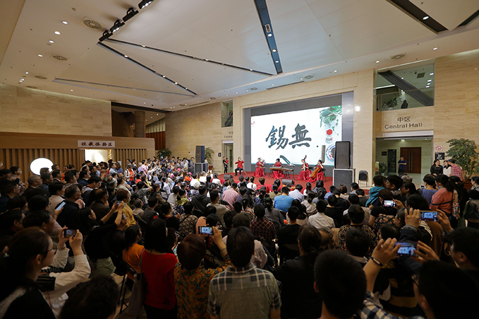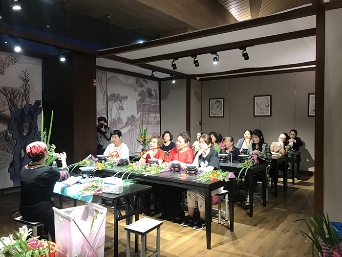 在乐曲声中,拈花拾趣--花艺体验活动、团扇风轻--扇面手绘体验活动等也已在社教体验区开启。除了丰富的社教活动,当晚还特别开放中区展厅,《得天之清——无锡艺兰文化展》《丹青澄怀——陶心华藏画展》《翰墨飘香——书画艺术展馆》《迎接黎明——庆祝无锡解放70周年主题展》四个特色展览呈现在观众面前,并有专场导览讲解。
