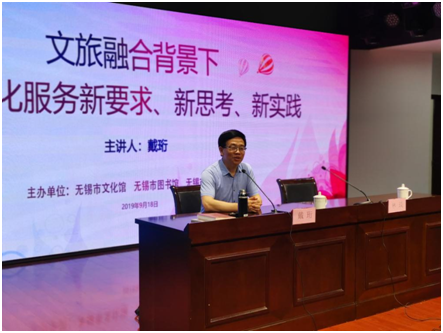 9月18日上午,江苏省文化馆馆长、省非物质文化遗产保护中心主任、国家文化和旅游公共服务专委会专家委员戴珩为市文化馆、市图书馆、市群文学会的业务干部带来了一场主题为“文旅融合背景下公共文化服务的新要求、新思考、新实践”的交流分享会,现场座无虚席,气氛热烈。