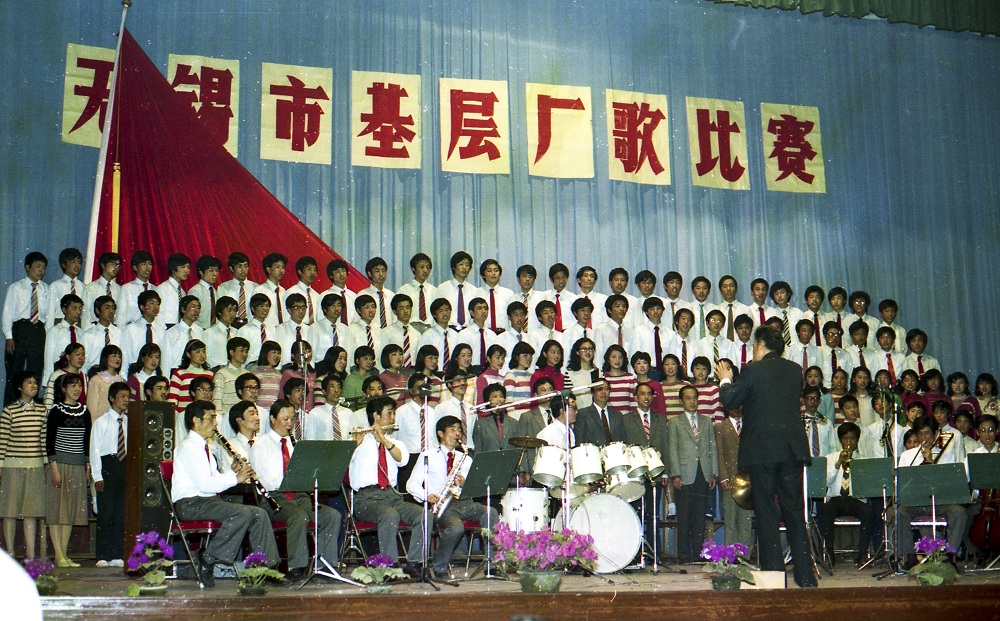 毛伟骏《1985年4月25日无锡市举办基层厂歌比赛》无锡市柴油机厂会堂