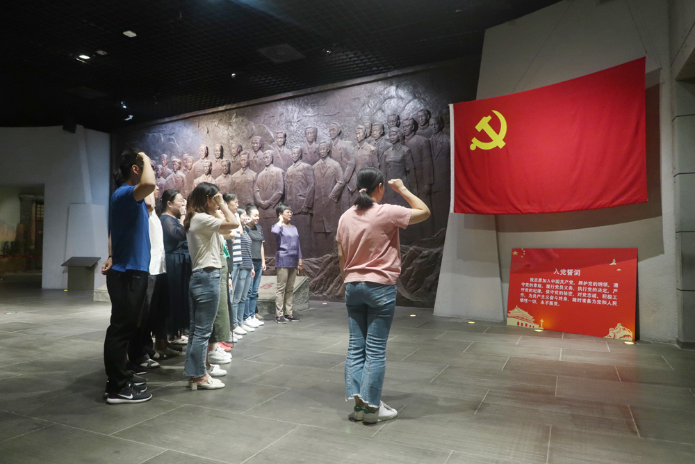 无锡博物院党总支高度重视,以强烈的政治担当和责任使命,把主题教育作为一项重大政治任务来抓。结合我院工作实际,精心组织全体党员同志开展“不忘初心、牢记使命”主题党日活动,并由党总支书记肖炜为党员同志讲党课;在学党史、学先进的基础上,围绕“初心是什么、使命干什么、奋斗比什么”进行交流讨论;通过观看《我和我的祖国》,参观院“无锡市庆祝中华人民共和国成立70周年综合成就展”、“肩负民族复兴期望的无锡人”、“血与火的城市记忆—无锡革命简史”、“我家的相册:新中国成立70周年无锡记忆摄影展”以及锡山区新四军六师师部旧址,开展集体学习,进行爱国主义教育,重温入党誓词。