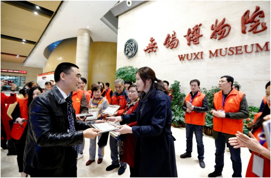 2019年是志愿者们付出多、收获更多的一年。前不久,我们锡博志愿者团队还在第十届“牵手历史——中国博物馆十佳志愿者之星”推介活动中,赢得了“十佳志愿服务团队”的光荣称号,值得骄傲!在今后与志愿者相伴的时光里,无锡博物院会不断组织各类特色福利活动,让义务奉献的志愿者队伍,在提升自我的同时,能充分感受到志愿服务带来的成就和满足感,让志愿者队伍永葆青春活力,更好地为公众提供服务。