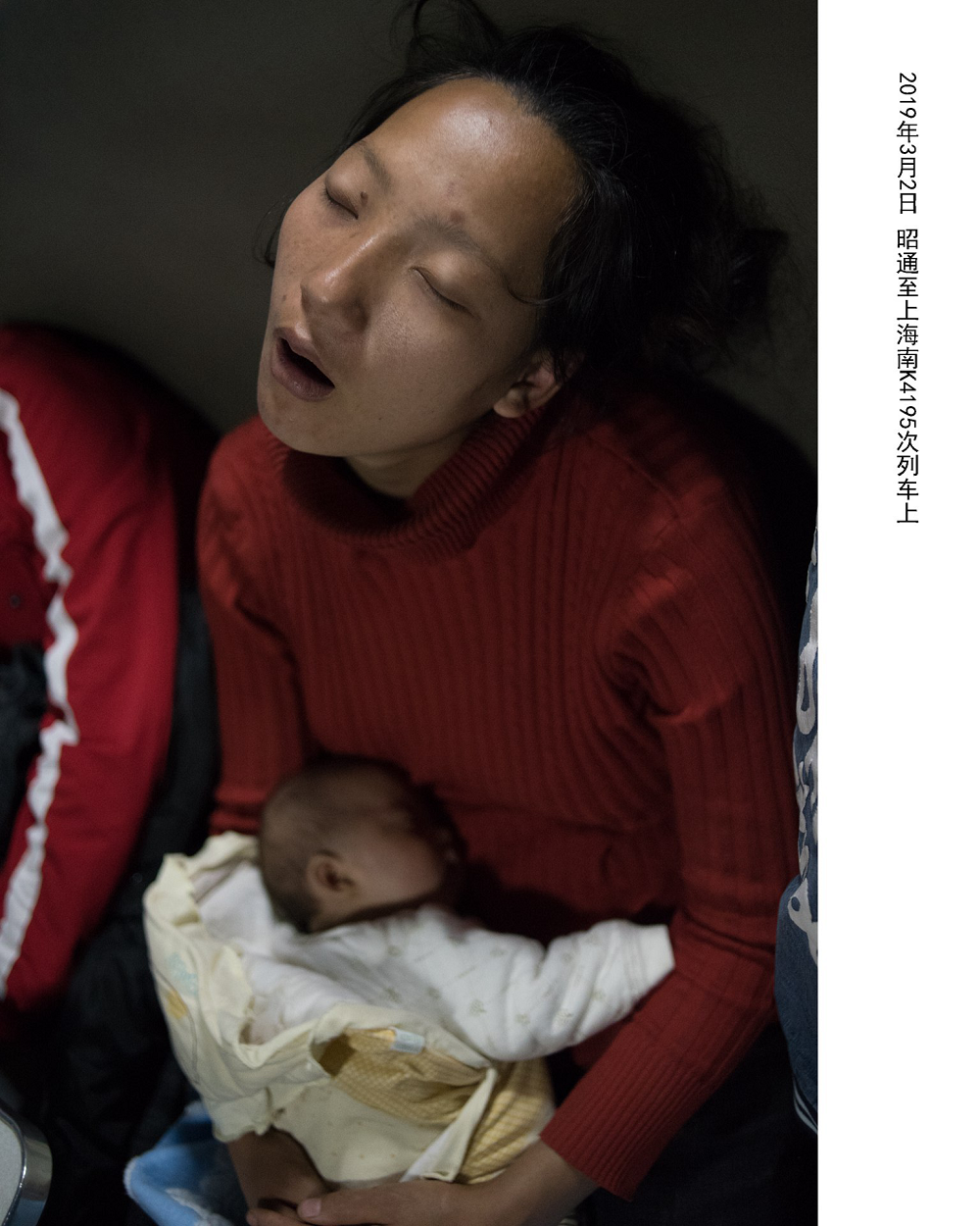 三部曲之三“一列车厢”:濑户正人和钱海峰的作品不仅采集了来自列车中的乘客的表情万象,更是对摄影艺术背后所映射出的人文关怀和社会体系的整体调查。日本地铁中表情茫然的上班族所体现的复杂生活状态和中国绿皮火车中乘客的简单、真实的生活存在着阶层文化的差异。