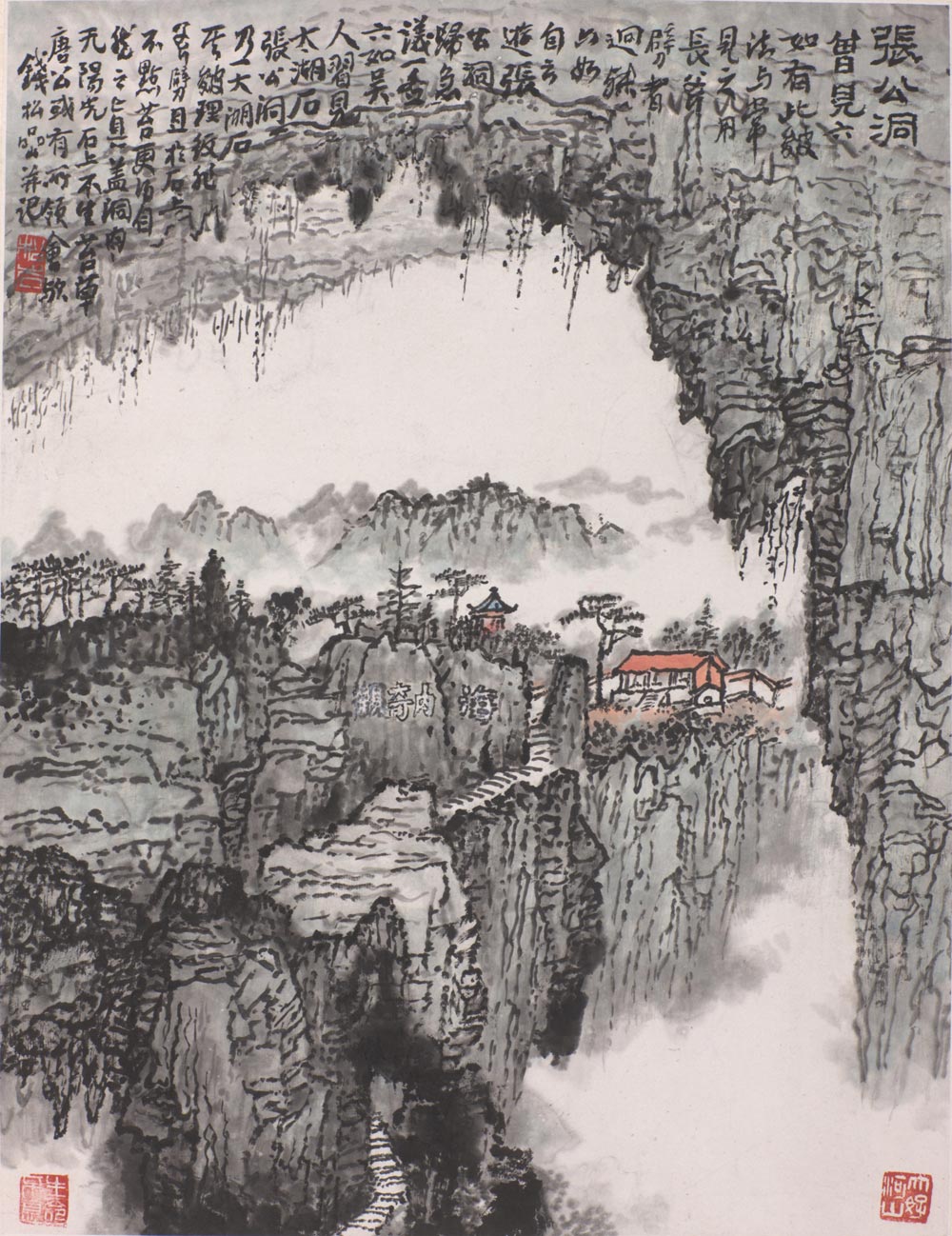 张公洞 纸本设色 纵45厘米 横35厘米 20世纪80年代