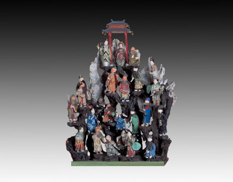 值得一提的是这件已有百岁高龄的“蟠桃会”,并未出现任何开裂与变形,依旧光鲜如初。这是为何呢?惠山泥人国家级非遗传承人喻湘涟认为,这主要归功于独特的惠山黑泥。这种棕黑色的泥土埋在惠山东北坡山脚下离地面约一米以下的地方。过去,惠山脚下看守祠堂的祠丁挖出黑泥,用草包好放于祠堂,每天洒水,待一年后泥土的火气褪尽,再放到青石板上,用木榔头反复捶打,之后用手不断揉搓。加工后的黑泥质地细腻富于韧性,弯而不断,干而不裂,可塑性极强。给泥人上色使用的则是不会褪色的天然矿物颜料,彩绘师傅把矿石打碎磨匀和在牛皮胶里,用毛笔绘在泥人上。如此一来,能最大程度地使泥人“保鲜”,这也是把它列为镇馆之宝的原因之一。