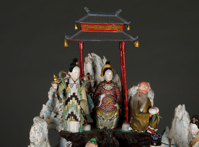 清光绪泥塑蟠桃会,这件泥塑作品是无锡博物院镇馆之宝,通高85厘米,由清末民间艺人周阿生手塑,陈杏芳上彩,是国家二级文物。