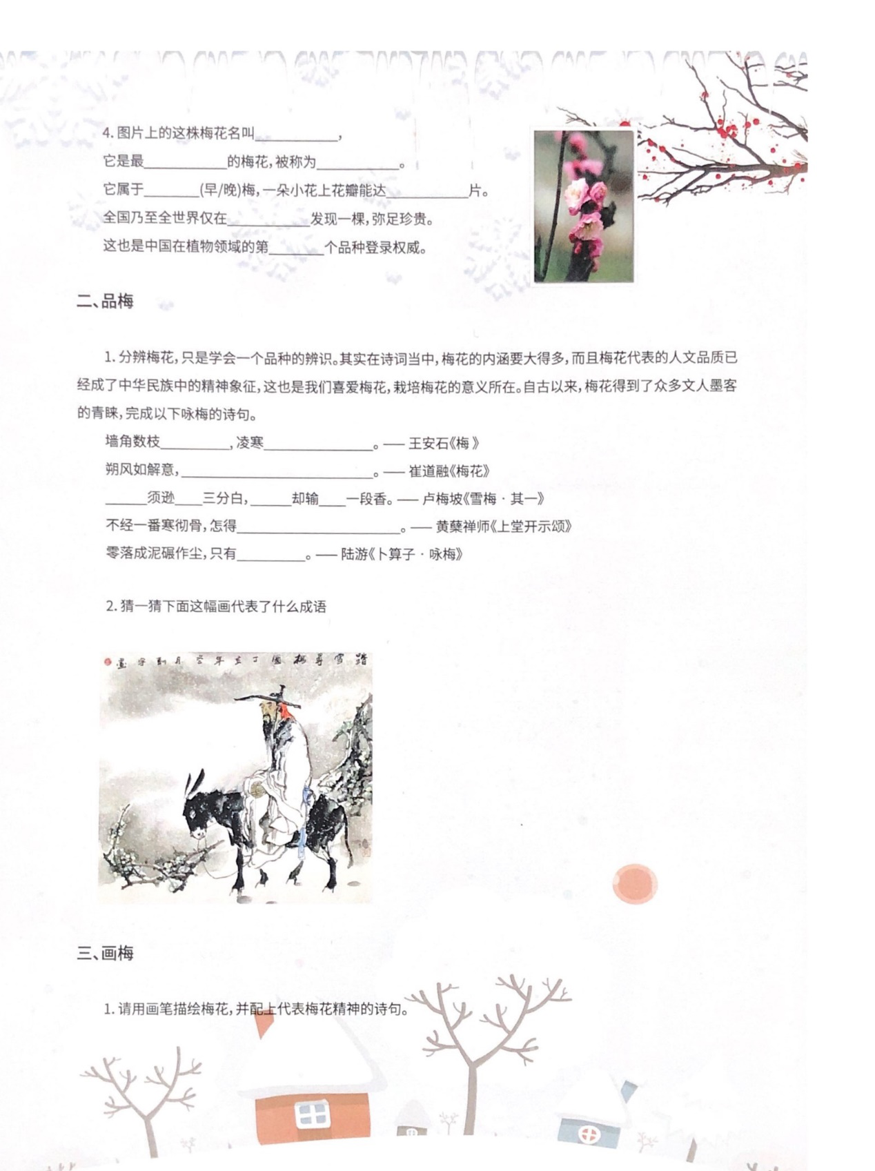 梅须逊雪三分白,雪却输梅一段香