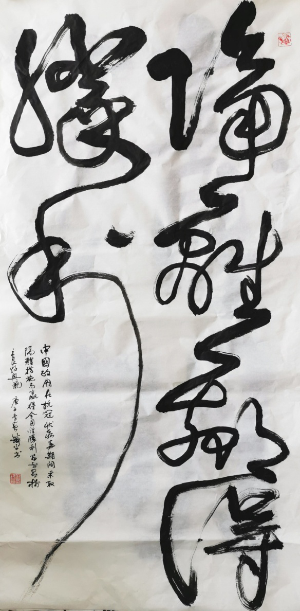 在这个特殊时期,刘铁平先生以笔铸剑、以墨抒怀,用书法传递真情,用艺术凝聚心力,以大爱之心助力疫情防控,不断发挥文艺凝神聚力、抚慰心灵的独特优势,为打赢疫情防控阻击战贡献着自己的精神力量。